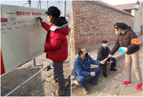 大年初一,接到一个急切的电话,王莉便告别了家人,匆匆赶回大道口村参与疫情防控工作。参与村两委24小时轮班执勤,坚守卡口。村内的排摸统计、疫情防控宣传等任务统统都要靠这位90后村干部来统一调度。王莉每天发出的500多条微信承载了对村民的一份责任,她往往在半夜收到村民的消息,耐心沟通从不言困与累。她制作的【战“疫”纪实】系列推送,让疫情防控知识和宣传工作以“看得见”的声音、“听得进”的口号、“靠得住”的信息播撒到每一位村民当中,将团结一致、共抗疫情的力量传递给大道口村的每一位乡亲,真正做到疫情防控宣传零距离。