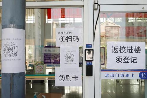 学生返校后将实行公寓区域化封闭管理。学生公寓楼内设置了废弃口罩专用垃圾桶,张贴着“七步洗手法”标识和消毒通风制度。
