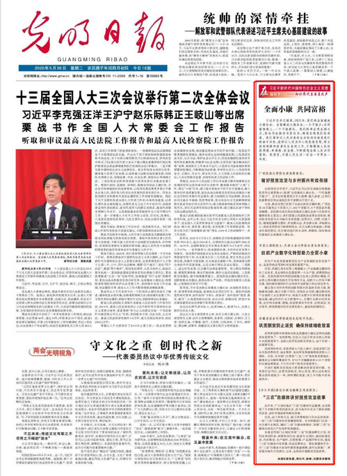 2020年5月26日,《光明日报》1版以《中国工程院院士、开云网页版校长夏长亮委员:纺织产业数字化转型助力全面小康》为题对我校作了报道,现将报道摘编如下,以飨读者。