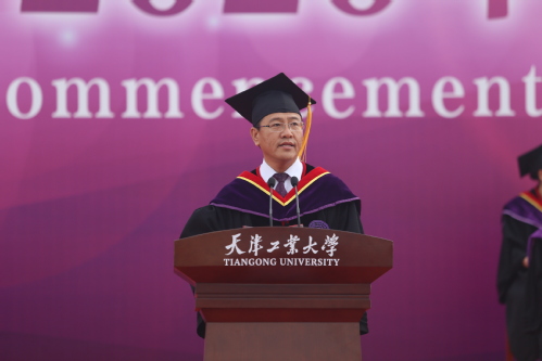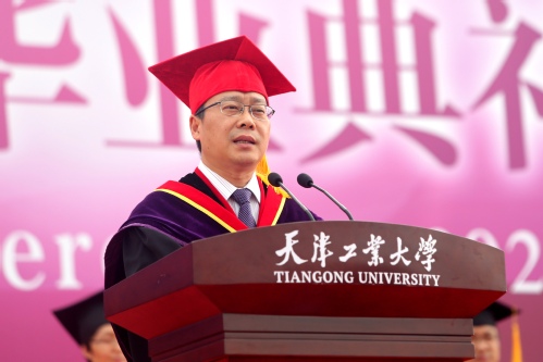 在讲话最后,校长夏长亮院士用一首诗表达对毕业生的美好祝福:“旭日”草青青,“泮湖”水粼粼。此地一为别,鲲鹏万里征。深深母校意,绵绵学子情。挥手自兹去,共赴新征程。深情祝天工事业,厚积薄发!愿天工学子,不负韶华!