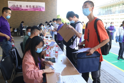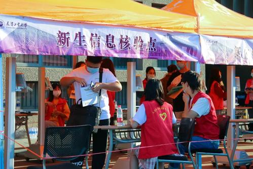 今年的新生报到工作,学校仍然提供“一站式”服务。各学院、各相关职能部门在励志广场开展联合办公,全天候做好迎新工作。