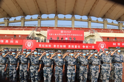 2020年9月21日上午,我校2020级学生军训动员大会在望星体育场举行。校党委副书记胡英江、承训部队领导丁聪同志出席。党委学生工作部部长范甜、人民武装部部长张志勇及各学院主要负责同志、辅导员、全体承训官兵和参训学生参加了动员大会。大会由校人民武装部副部长贾麟主持。