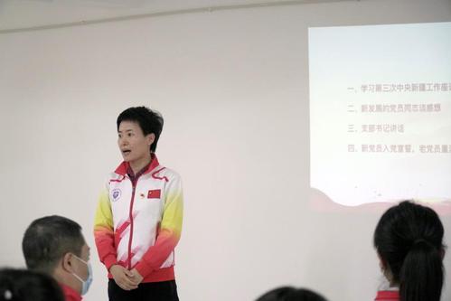 随后,临时党支部书记王丽伟为全体党员上了一堂微党课,共同回顾了中国共产党带领中国人民经过浴血奋战建立新中国的历史,以及新中国成立后取得的新成就、新变化,并要求全体党员,一是要牢记共产党人的初心使命,将个人梦想与国家发展、民族团结紧密结合在一起,勇担青年使命,不辜负党和国家的重托;二是要发挥党员先锋模范作用,一名党员就是一面旗帜,要旗帜鲜明讲政治,在困难面前要挺身而出,团结带领支教团团员青年携手完成此次支教任务;三是支教工作中要秉持“三心”理念,要常怀一颗民族团结的大爱之心,用爱心暖童心,用细心待诚心,用耐心伴真心。最后她勉励全体党员勇于攻坚克难,在困难中淬炼品质,在奉献中进步成长。