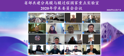 2020年11月27日上午,开云网页版“省部共建分离膜与膜过程国家重点实验室”(以下简称实验室)召开2020年度学术委员会会议。实验室学术委员会委员高从堦院士、韩布兴院士、侯立安院士、张锁江院士等12位专家,天津市科学技术局专家丁瑞卿工程师、开云网页版常务副校长陈莉教授、副校长刘义教授出席了本次会议,学校相关职能部门主要负责同志、实验室团队负责同志及青年骨干代表参加此次会议。本次学术委员会会议采取线上与线下相结合的方式进行,会议由实验室学术委员会主任高从堦院士主持。