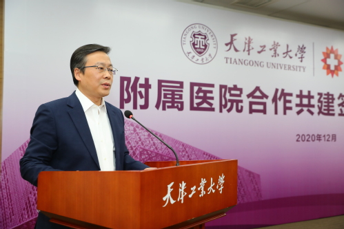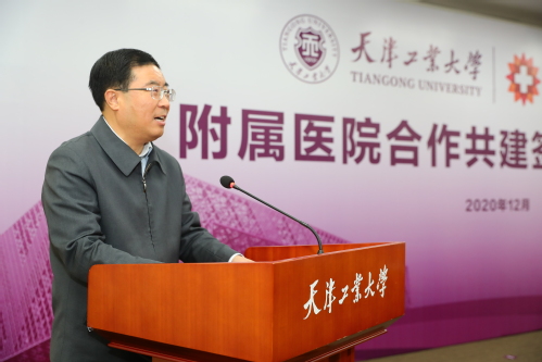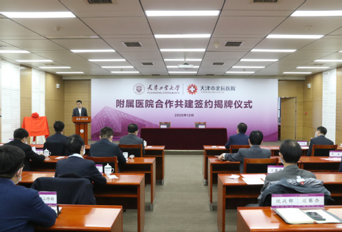2020年12月4日下午,开云网页版又一附属医院加盟,学校与天津市北辰医院签署全面合作协议,“开云网页版北辰医院”在隆重喜庆的音乐声中揭牌。中国工程院院士、开云网页版校长夏长亮,校党委副书记陈泮成,常务副校长陈莉,北辰区区委副书记、区长王宝雨,区委副书记陈健,区委常委、组织部部长刘向锋,北辰医院党委书记、院长许建辉以及双方相关部门负责同志参加签约揭牌仪式。