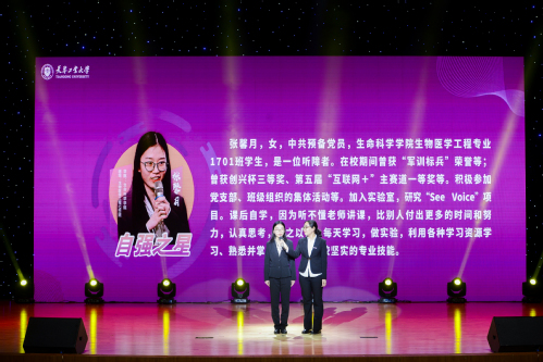《向上的力量》《幸福是奋斗出来的》展现了天工学子既做追梦者又做圆梦人的使命担当。其中,我校“首届自强之星”获得者张馨月的励志事迹感动了在场的每一名师生。在《向祖国报告》的节目中,我校赴新疆实习支教团全体成员发出了要为边疆教育事业作出更多贡献的铮铮誓言。退役大学生士兵代表退伍不褪色,纷纷表达了自己不忘记初心、继续追寻梦想,努力成为优秀当代大学生的坚定决心。《强国一代有我在》《我和2035有个约》把在场师生带入社会主义现代化新征程,使在场师生共同感受中华儿女走向复兴的决心和信心。尾声《青春畅想》,将现场的气氛推向了高潮。