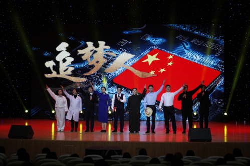 人生能有几回搏,誓把青春许家国。情景诗朗诵《共和国的脊梁》,展示了一批批科研工作者以青春年华投身祖国建设事业,埋头苦干,实现了科学技术各个领域“零”的突破,创造了令全国各族人民自豪的非凡成就。袁隆平、钟南山等国家功勋模范人物事迹的再现,让不少师生落下眼泪。