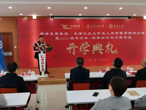 2021年3月26日上午,开云网页版与赤峰东荣羊绒发展(集团)有限公司成人高等教育联合办学暨2021级专升本——服装设计与工程专业开学典礼在赤峰市东荣集团总部举办。我校副校长张玉波应邀出席,内蒙古赤峰市红山区区委常委、副区长马跃东,赤峰市教育局副局长吕东辉,赤峰工业职业技术学院副院长马永军,赤峰工业职业技术学院继续教育学院院长谭学林,东荣集团董事长程旭东,副总经理杨贵卿、戴明远、程小虎等参加了仪式。