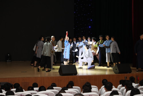 铭记历史、缅怀先烈,为了不能忘却的纪念,我们更要坚定脚步再出发。学生代表、人文学院学生赵晟以红色故事会的形式,通过对张思德的追忆,展示了红色革命精神不因时代变迁而失色,更不因岁月流逝而黯淡,它与我们每个人情感相连、心灵相通……