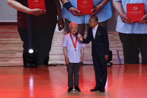 离退休党委老党员代表张崇本同志分享了光荣在党50年的所思所想所感,生动诠释了一名老天工人不忘初心,立德树人,牢记共产党员的崇高使命和教育工作者的无私奉献,现场师生无不动容。
