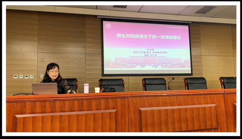 李川勇教授从新时代本科教育面临的挑战和应对、“南开40条”和育人生态时空体系的构建、以师生共同体的构建推动一流课程建设三个方面进行了分享,传达了先进的教育教学理念,引发了与会教师的强烈共鸣。