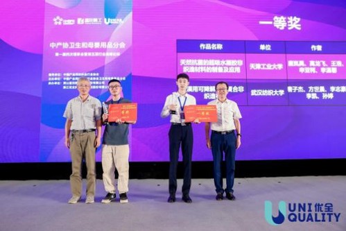 本届大赛共收到来自全国二十所高校的180余件作品,参赛高校和作品数量均为历年最高。我校纺织科学与工程学院封严、钱晓明教授指导,唐岚昊、高龙飞、王浩、申亚柯、李温馨团队的作品“天然抗菌的超吸水凝胶非织造材料的制备及应用”获得大赛一等奖;范杰、刘雍教授指导,柳洋、李玮、罗仟、温雅杰、曹宝团队的作品“单向导湿高抗菌棉水刺复合非织造材料”获得二等奖。此外,在本次大赛上,我校还获得三等奖8项,优秀奖3项。
