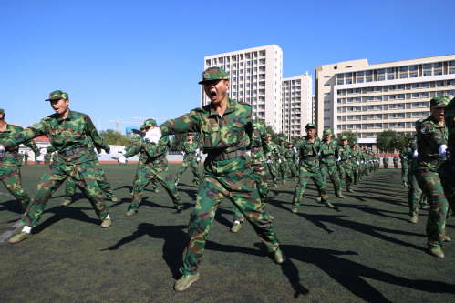 9月4日,各学院在训练场召开军训动员大会。动员大会后,各营根据每日目标开始有序训练。