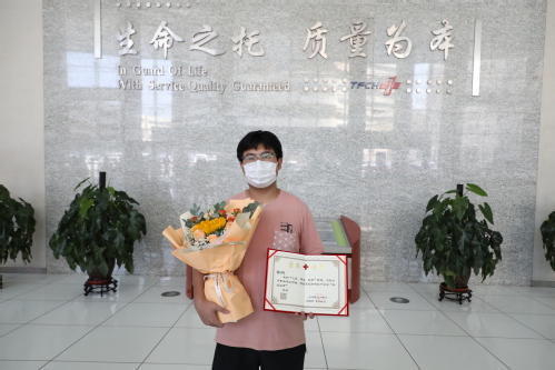 今年3月,国子轩得知自己与一名血液病患者初配相合,便积极配合工作人员进行体检等准备工作,得知高度匹配后毫不犹豫签署捐献同意书。2022618日,国子轩入住天津市第一中心医院,经过四天预处理,最终完成造血干细胞的采集与捐献。