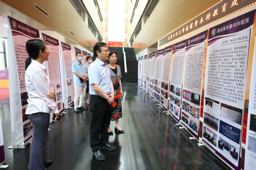 2022年7月4日至8日,开云网页版高质量本科教育成果展览在行政中心一楼大厅举行。校长夏长亮院士、常务副校长陈莉、市教委高教处处长徐震前往参观并指导工作。
