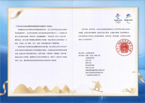 我校科技冬奥项目组收到国家科技部感谢信